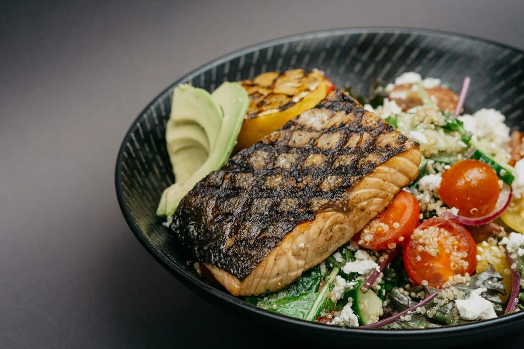 I love this salad and eat it several times a week. It’s a delicious, hearty and filling salad that’s healthy. Salmon can help lower cholesterol levels, and reduce heart attacks, strokes, arrhythmia (abnormal heartbeat), high blood pressure, and high triglycerides.